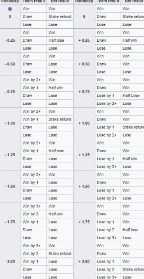 The image below also displays various handicap lines for both favourites and underdogs, along with a detailed explanation of how the match's outcome affects your bet.